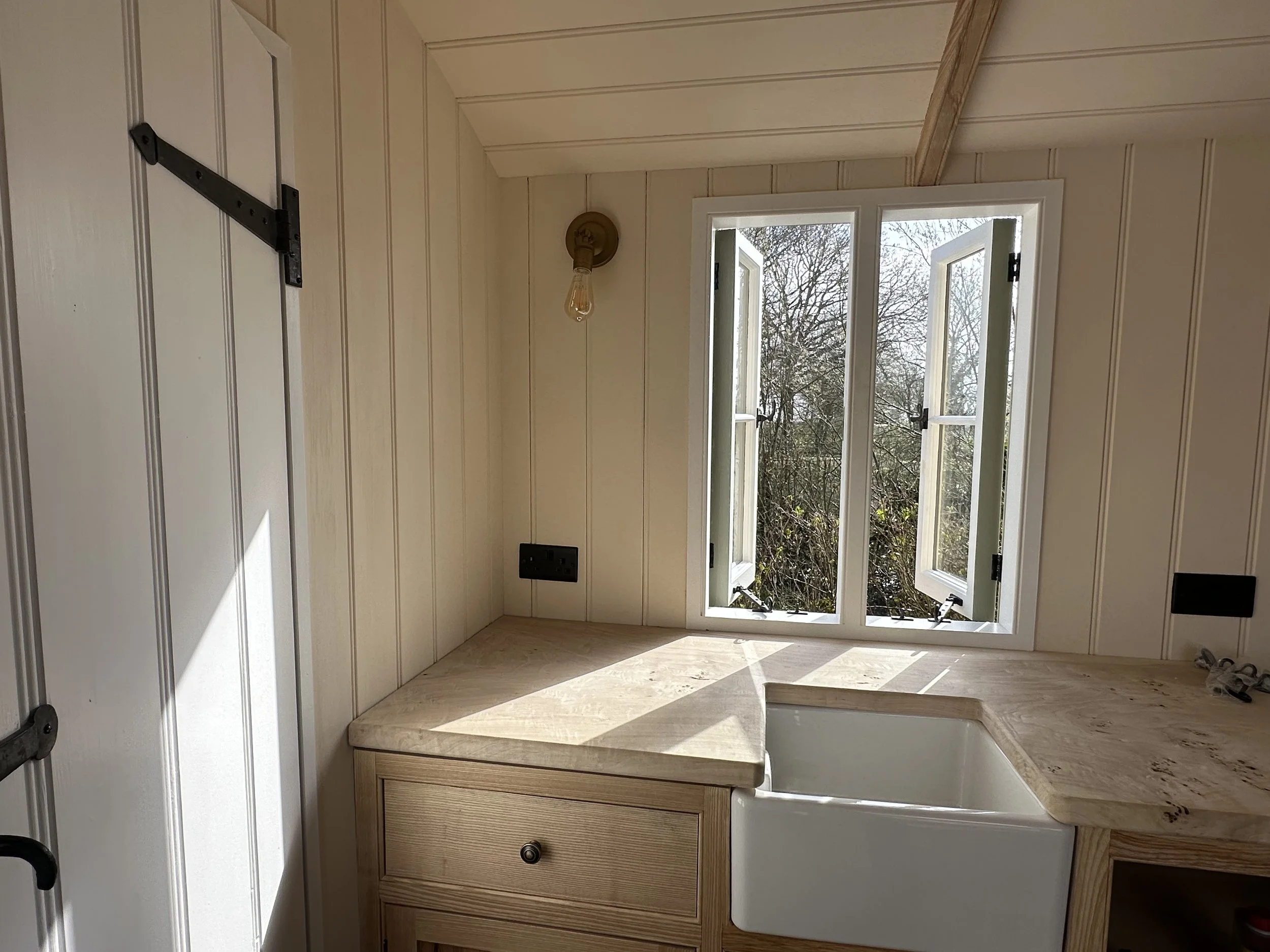 Elkham Shepherd’s Huts are built in a quiet workshop in the South Downs, where traditional joinery meets careful, considered design.